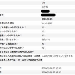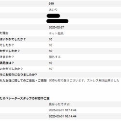 T様いつもご利用ありがとうございます。また貴重なご意見ありがとうございます。あかねさんと楽しんで頂けて良かったです。あかねさんもアンケートを見て喜んで頂いている事と思います。今後ともどうぞ宜しくお願い致します。 ...