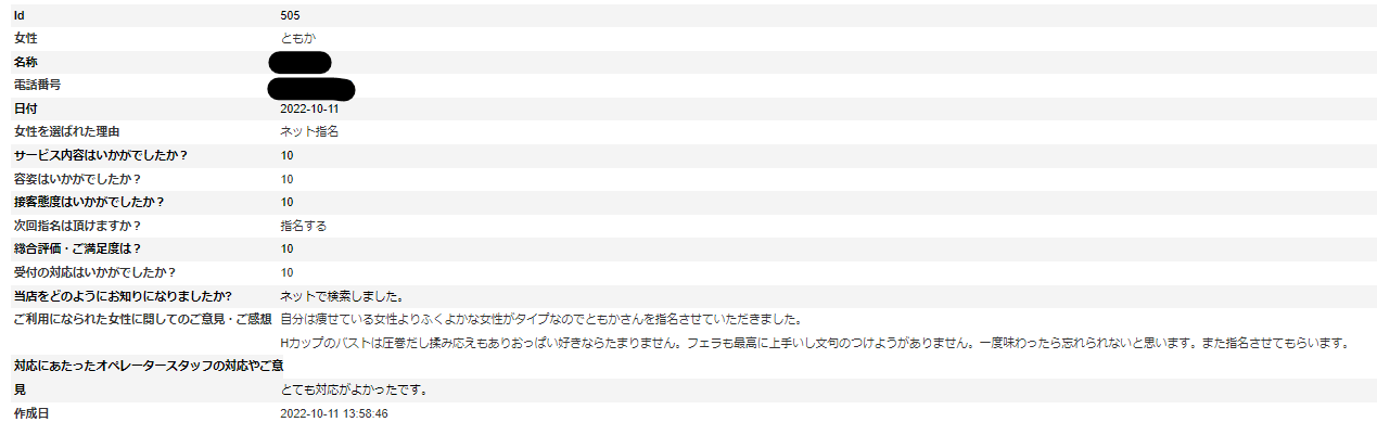 ともかさんお客様からアンケート 2022年10月11日 O様いつもご利用ありがとうございます。また貴重なご意見ありがとうございます。ともかさんと楽しんで頂けて良かったです。お褒めのお言葉ありがとうございました(*^▽^*)ともかさんもアンケートを見て喜んで頂いている事と思います。当店は、実技講習がないお店なので、詳しく教えて頂きまして、とても参考になりました。今後ともどうぞ宜しくお願い致します。 < 前の記事次の記事 > コメント コメントフォーム 名前 コメント 記事の評価 リセット リセット 顔 星 情報を記憶 コメントを投稿する